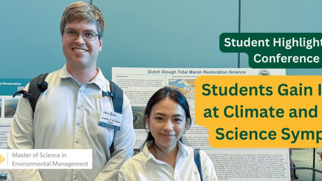 Learn to manage the world’s toughest challenges. Come learn how to protect vulnerable ecosystems, shift to sustainable energy resources, and ensure equitable access to clean air and water. Through hands-on coursework and applied research, we help you to move up and make a difference in environmental agencies, consulting firms, industry, and nonprofit organizations.