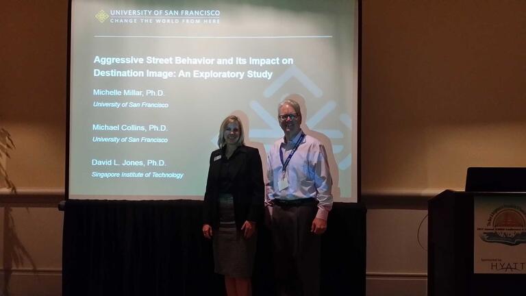 Dr. Michelle Millar and Dr. Michael Collins represented the University of San Francisco (USF) at the International Council on Hotel, Restaurant and Institutional Education’s (ICHRIE) Annual Conference last month in Orlando, Florida.