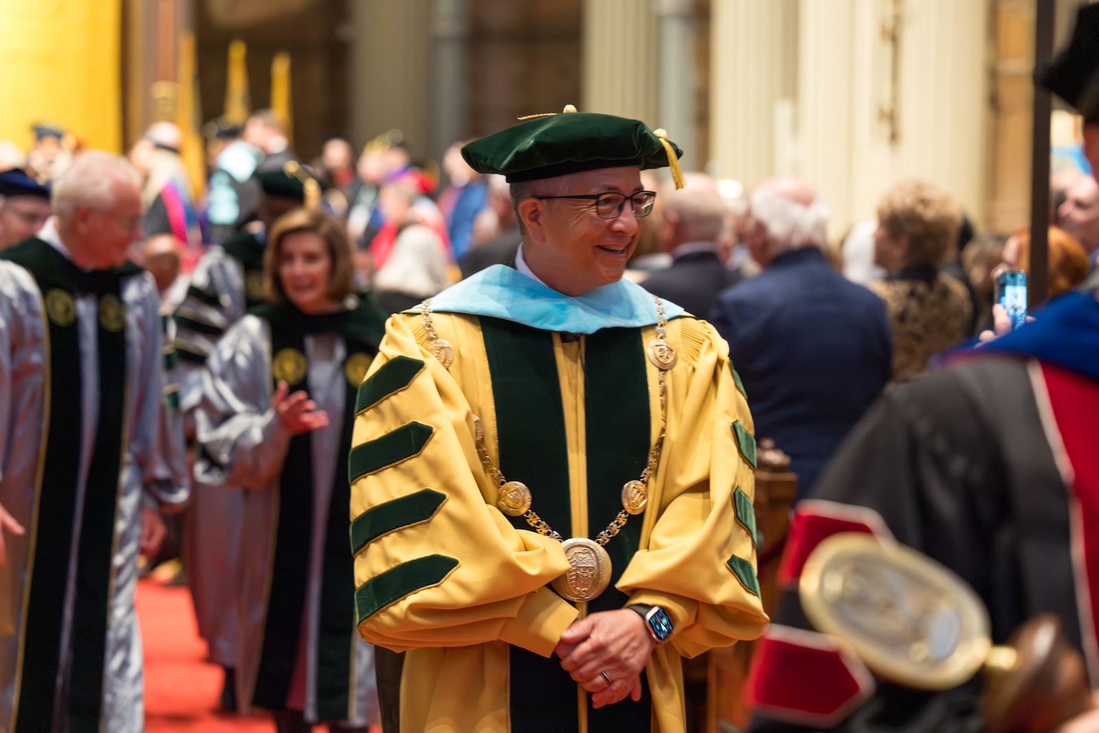 More than 500 students, alumni, faculty, staff, and friends of USF, including U.S. House Speaker Emerita Nancy Pelosi and San Francisco’s city leaders, gathered in St. Ignatius Church on Oct. 18 to celebrate the inauguration of Salvador D. Aceves ’83, EdD ’95.